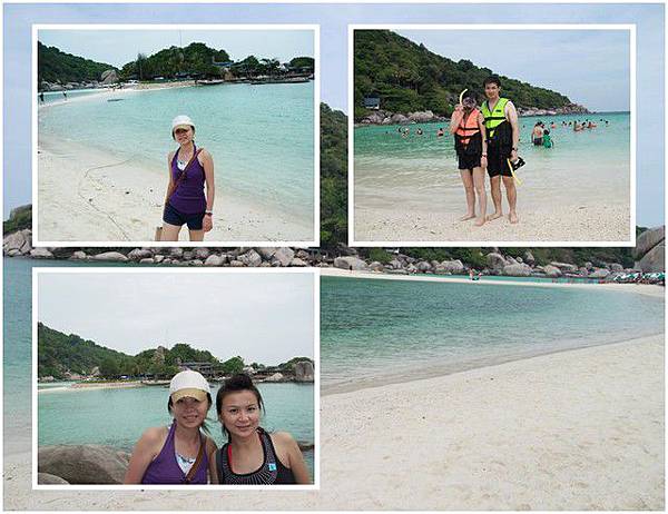 白色的沙灘加上藍綠色透明的海水,這邊就是我們等下要浮潛的地方了