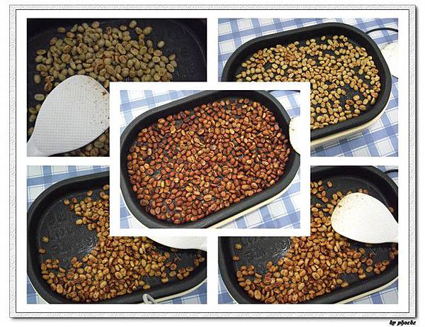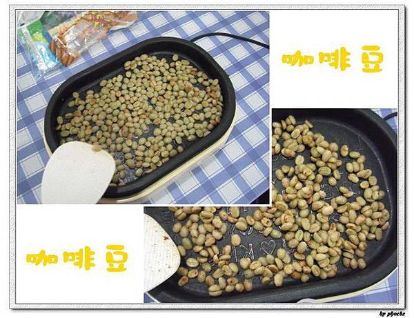 不斷的翻炒之後,慢慢顏色開始有點像外面市售的咖啡豆了
